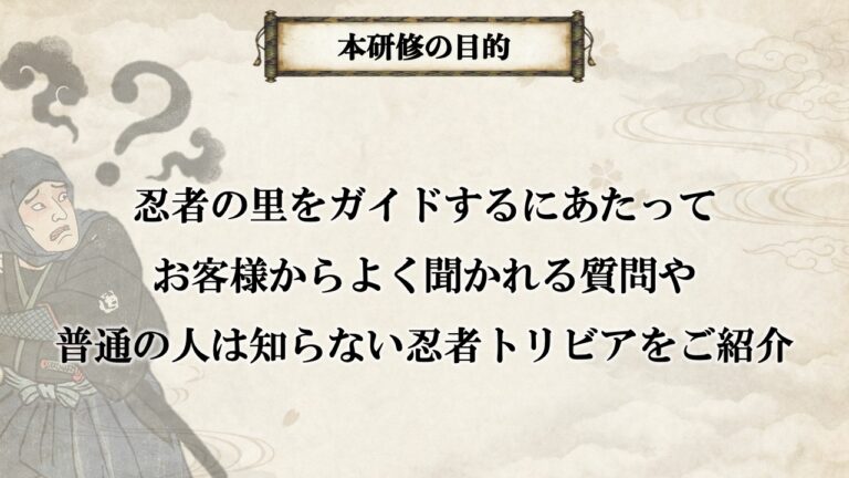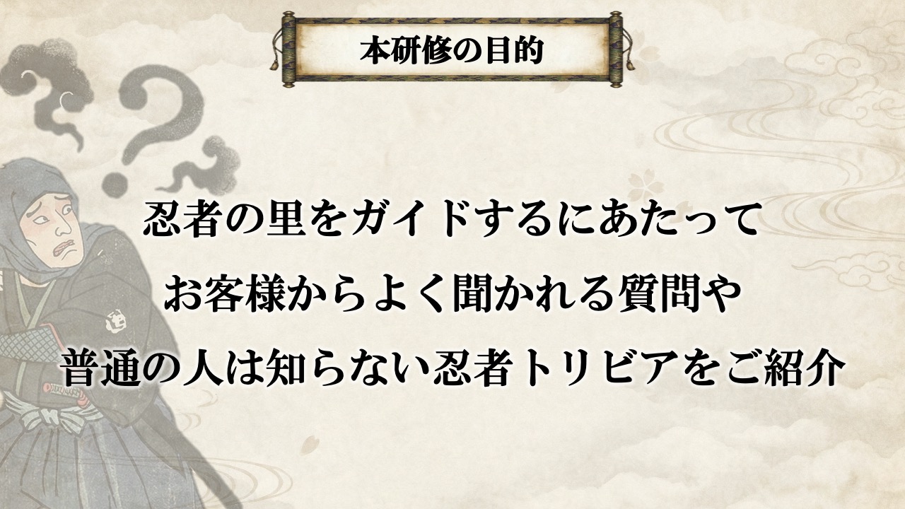 JR西日本コミュニケーションズが運営するGold-Guideの認定ガイドに対して、忍者の歴史や忍術に関する基礎的なレクチャーと、忍者に興味がある訪日外国人に対してどのような心構えやアクション、Q&Aをすると喜ばれるかについて講演しました。