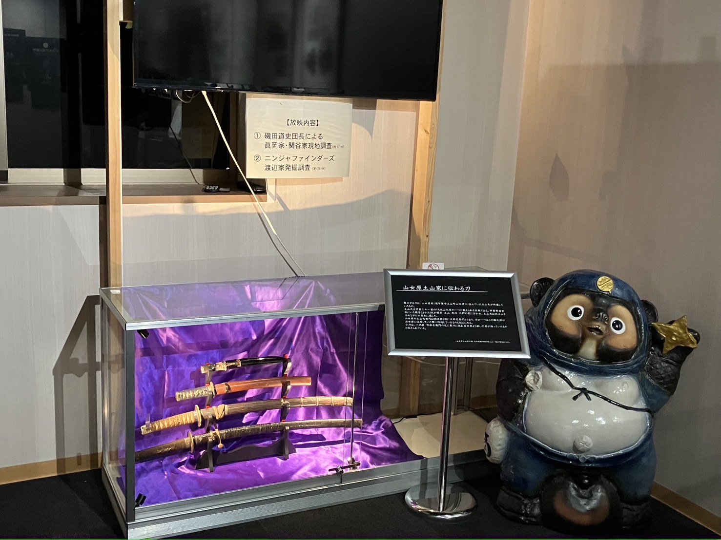 甲賀市の観光インフメーションセンター「甲賀流リアル忍者館」に新規のプロジェクションマッピングを設置。また、忍術書に記載される忍具・忍器が実際に体験できる動態展示を制作しました。