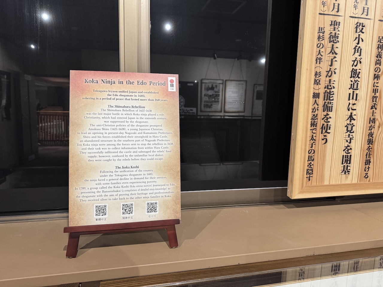 甲賀流リアル忍者館の研修室を和風のしつらえに整備しました。甲賀流リアル忍者館にて今後忍者体験を強化していくにあたり、雰囲気を出すための和風装飾として、壁や窓の装飾・天井や床の張り替えに加え、用具を設置するスペースを確保するための和風の仕切りを設置しました。また、訪日外国人に向けた英語パネルを制作し、施設の体験価値を高めました。