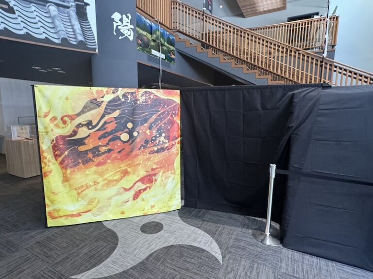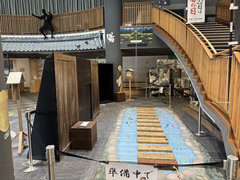 甲賀市の観光インフメーションセンター「甲賀流リアル忍者館」に新規のプロジェクションマッピングを設置。また、忍術書に記載される忍具・忍器が実際に体験できる動態展示を制作しました。