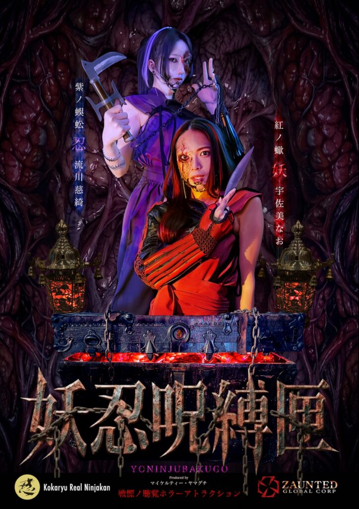 甲賀流リアル忍者館の新アトラクションとして、忍者×サウンドホラーアトラクション「妖忍呪縛匣(よにんじゅばくばごう)」の企画および進行管理・設営を担当しました。ZAUNTED様プロデュースのバイノーラル音響を用いた没入型の体験コンテンツで、来館者に新たな忍者体験を提供しました。